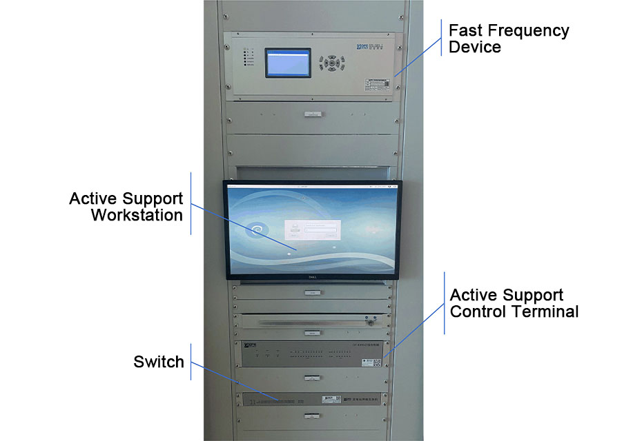 The system primarily consists of three components: the active support control terminal, fast frequency device, and active support workstation.